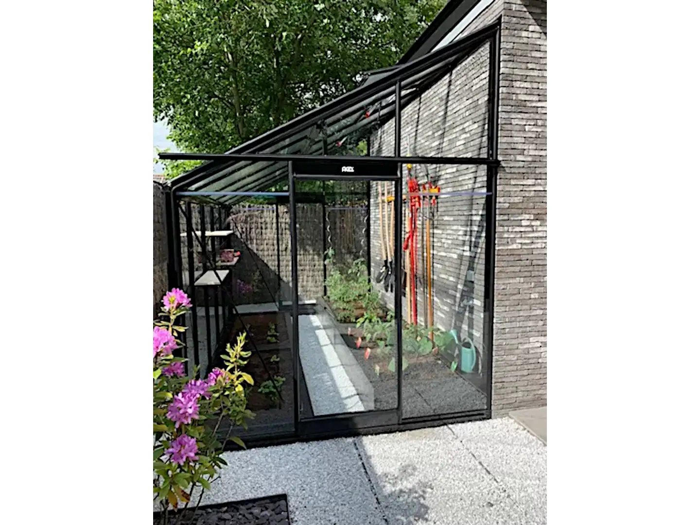 Привлекательная и качественная настенная теплица для любителей садоводства, которые, помимо практических нужд, рассматривают теплицу и как декоративный элемент, гармонично вписывающийся в сад .