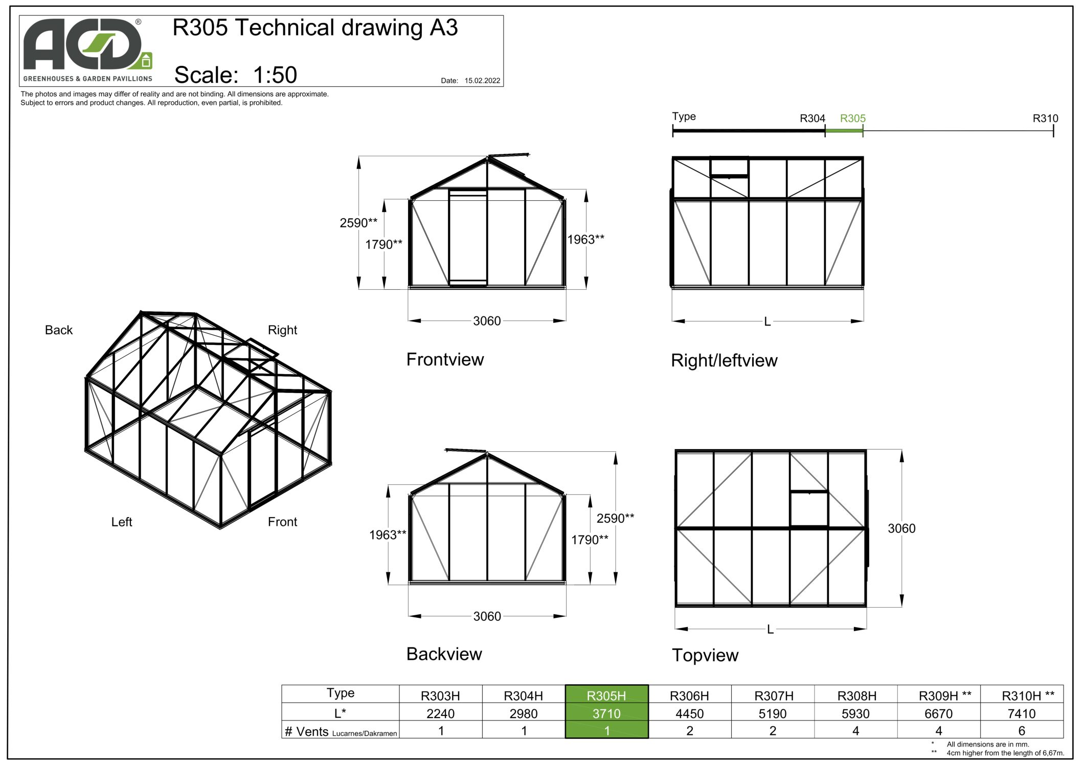 Теплица типа R3 поставляется в 7 вариантах длины: | |||